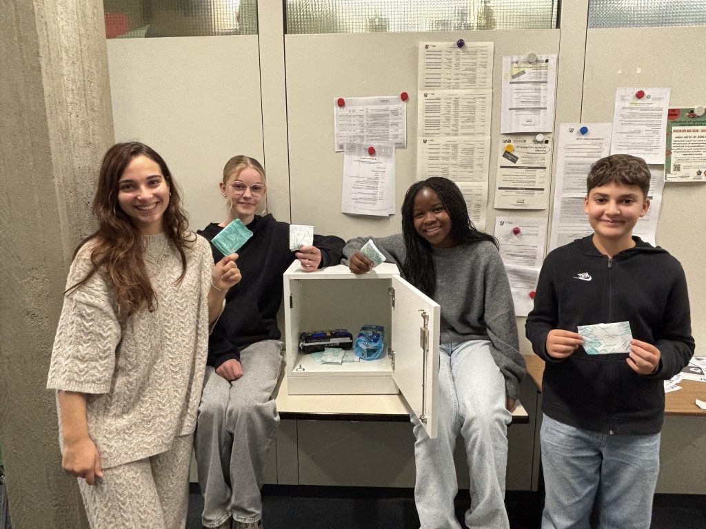 Seit einiger Zeit gibt es direkt neben dem Sekretariat ein Tischchen mit einem kleinen weißen Schrank. Was hat es damit auf sich? Unsere Schülerreporterinnen Helin und Derock haben bei Emily aus der 8b nachgefragt. Helin: Was wird in dem Schrank aufbewahrt? Emily: Der Schrank enthält verschiedene Damenhygieneartikel. Helin: Wessen Idee