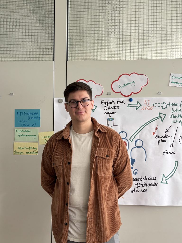 Seit kurzer Zeit ist Levin Neudorf als Vertretungslehrer wieder zurück an unserer Schule. Wir Schülerreporterinnen haben ein Interview mit ihm geführt. Helin: Welche Fächer unterrichten Sie, Herr Neudorf? Levin Neudorf: Ich unterrichte Mathematik, Sozialwissenschaften und auch Informatik. Derok: Warum sind Sie wieder an unsere Schule gekommen? Herr Neudorf: Ich habe