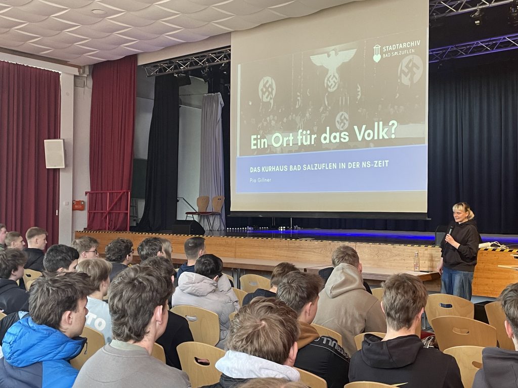 Auf dem Lehrplan unserer 10. Klassen steht aktuell die Beschäftigung mit Deutschland zur Zeit des Nationalsozialismus. Intensiv haben sich die Schülerinnen und Schüler bereits mit der NS-Ideologie, dem Führerkult und den von den Nationalsozialisten genutzten Propagandamitteln beschäftigt. Auf Einladung des Fachbereichs Geschichte war jetzt Pia Gillner, Masterstudentin der Geschichtswissenschaft und