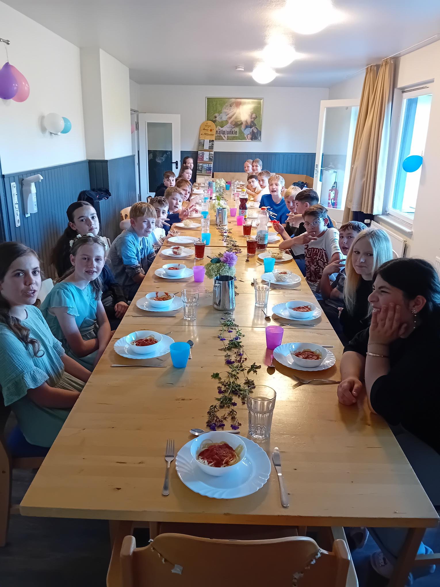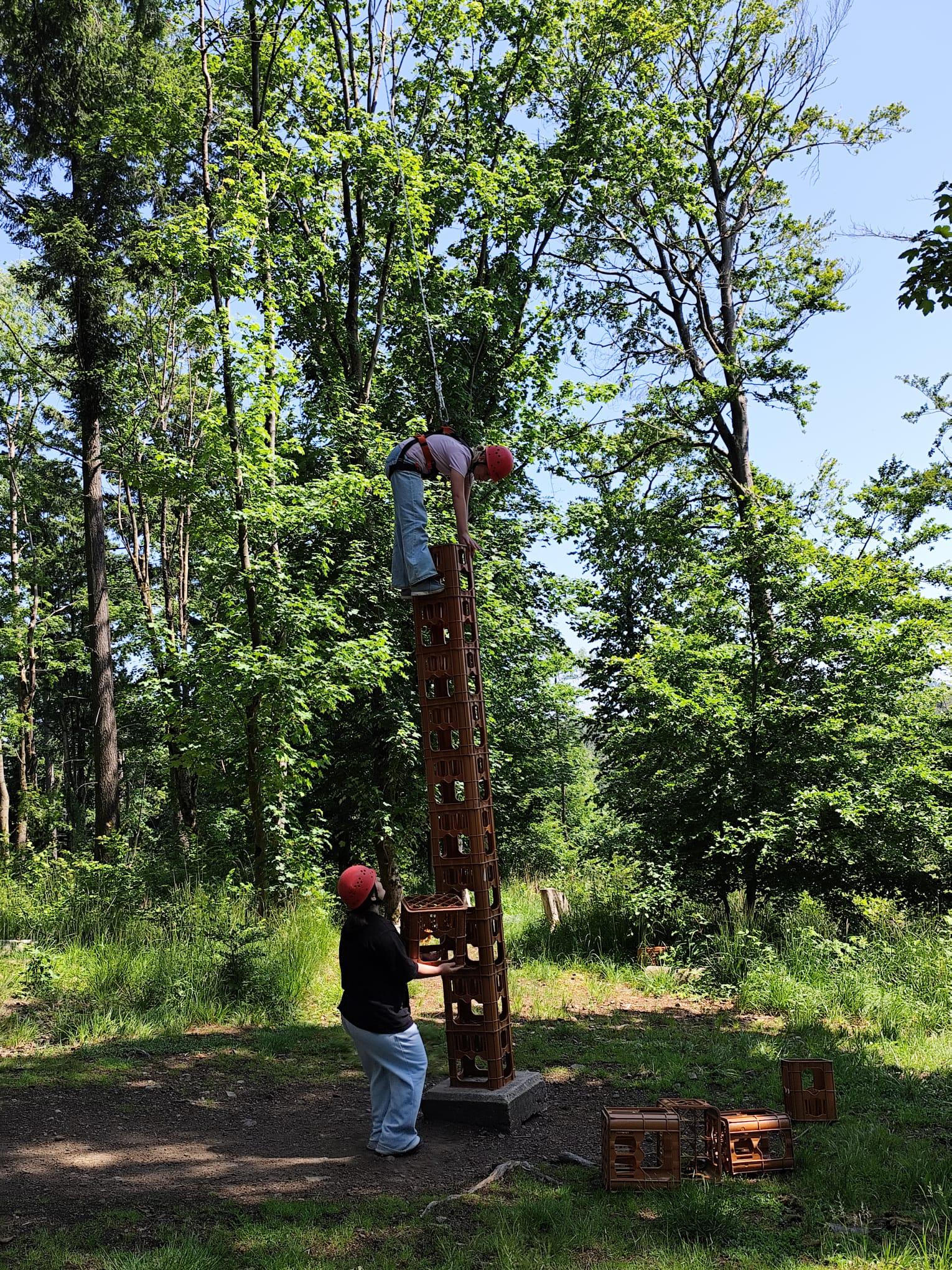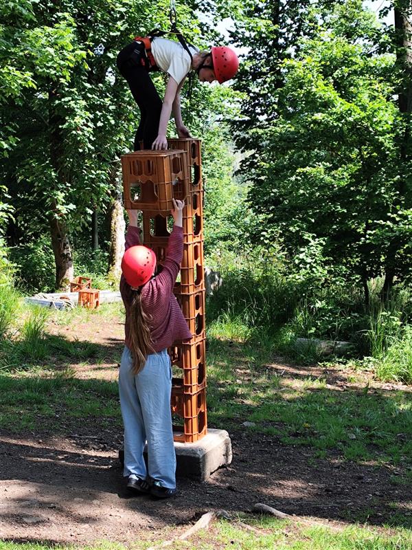 Am Donnerstag machten alle beim Kistenklettern mit und sicherten sich gegenseitig, da war Teamarbeit gefragt! Abends gab es ein festliches Essen, für das sich alle schick gemacht hatten.