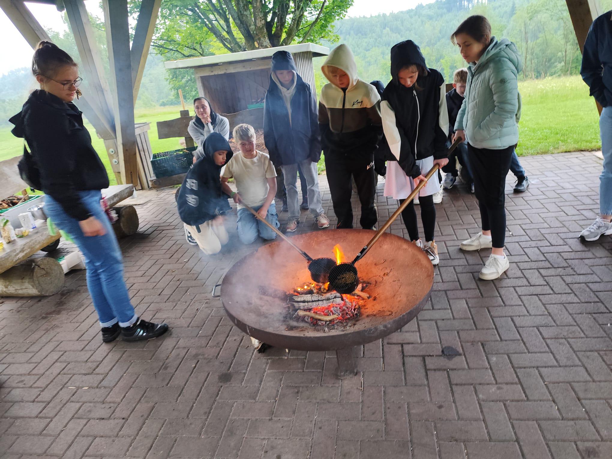 Am Mittwoch stand eine Wanderung zu den Stollen auf dem Programm. Die Klasse durfte sogar hineingehen, während die andere Gruppe draußen Verstecken spielte. In der Sonne wurde später noch Fußball gespielt und die Freizeit genossen.