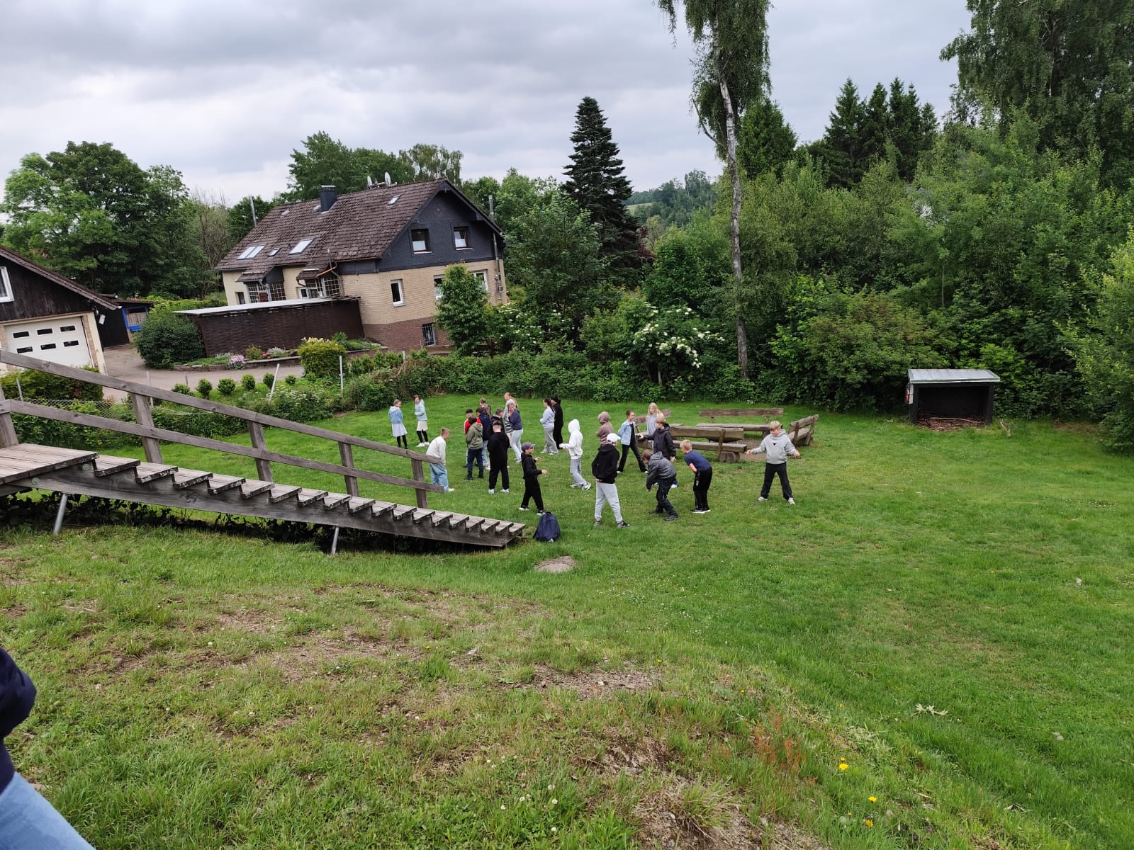 Eine tolle Klassenfahrt verbrachte die 6a in Braunlage-Hohegeiß im Harz. Am Dienstag, dem ersten Tag, wurden nach der Busfahrt zunächst die Zimmer bezogen und dann das Gelände erkundet. Besonders viel Spaß  machte den Schülerinnen und Schülern das Spiel „Haus erobern“, bei dem sich eine Betreuerin mit dem Rücken zu den Schülern drehte,  die dann versuchten, das Kuscheltier zu bekommen, das hinter der Betreuerin lag. Drehte sich die Betreuerin, mussten alle Schüler stehen bleiben. Abends gab es ein Lagerfeuer mit selbstgemachtem Popcorn – trotz Regens war die Stimmung richtig gut.
