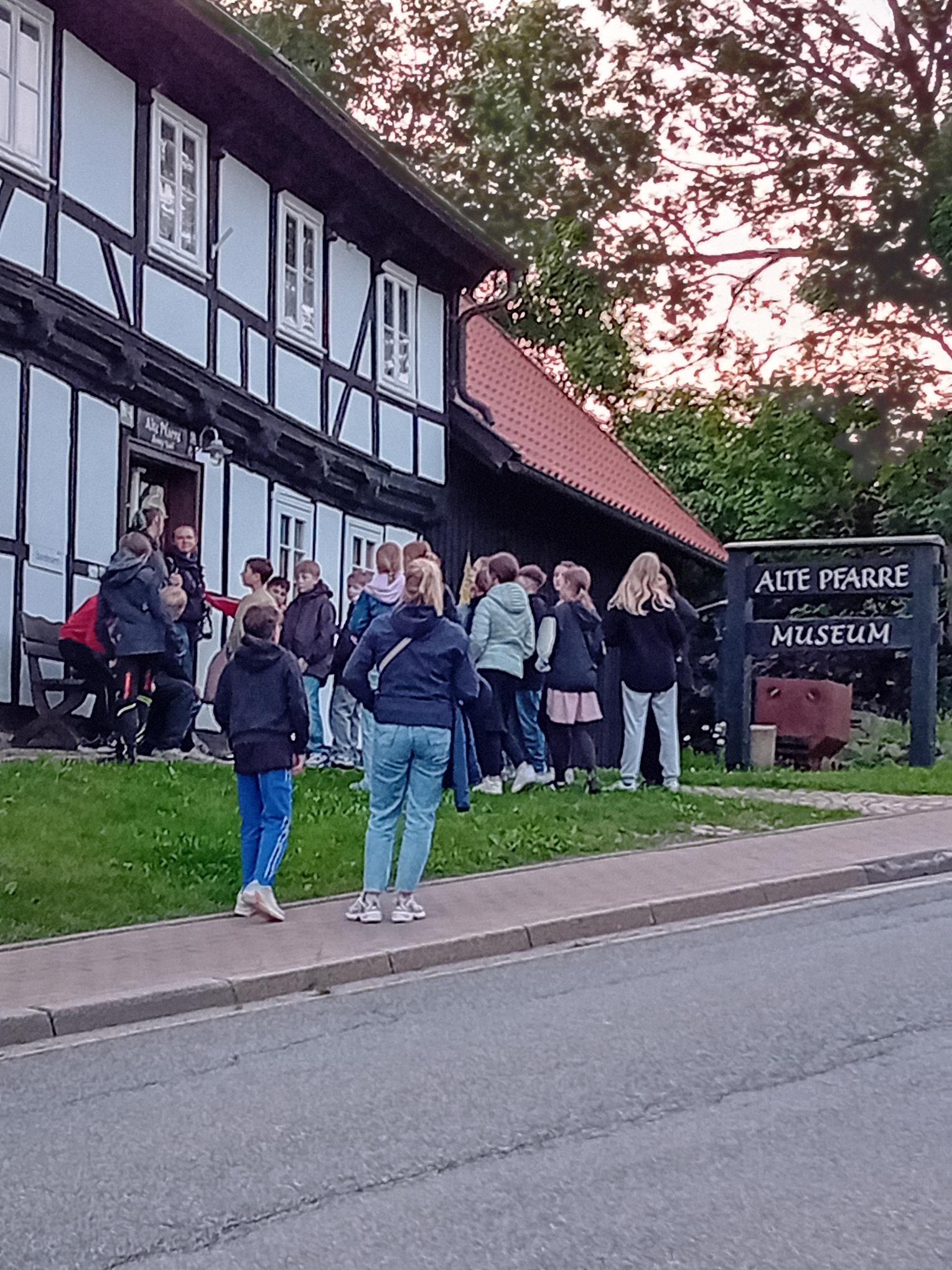 Abends ging es ins Heimatmuseum Hohegeiß, wo Aufgaben in verschiedenen Räumen gelöst werden mussten. Dabei ging es richtig spannend zu, denn die Ausstellungsstücke mussten mit Taschenlampen im Dunkeln gesucht werden.