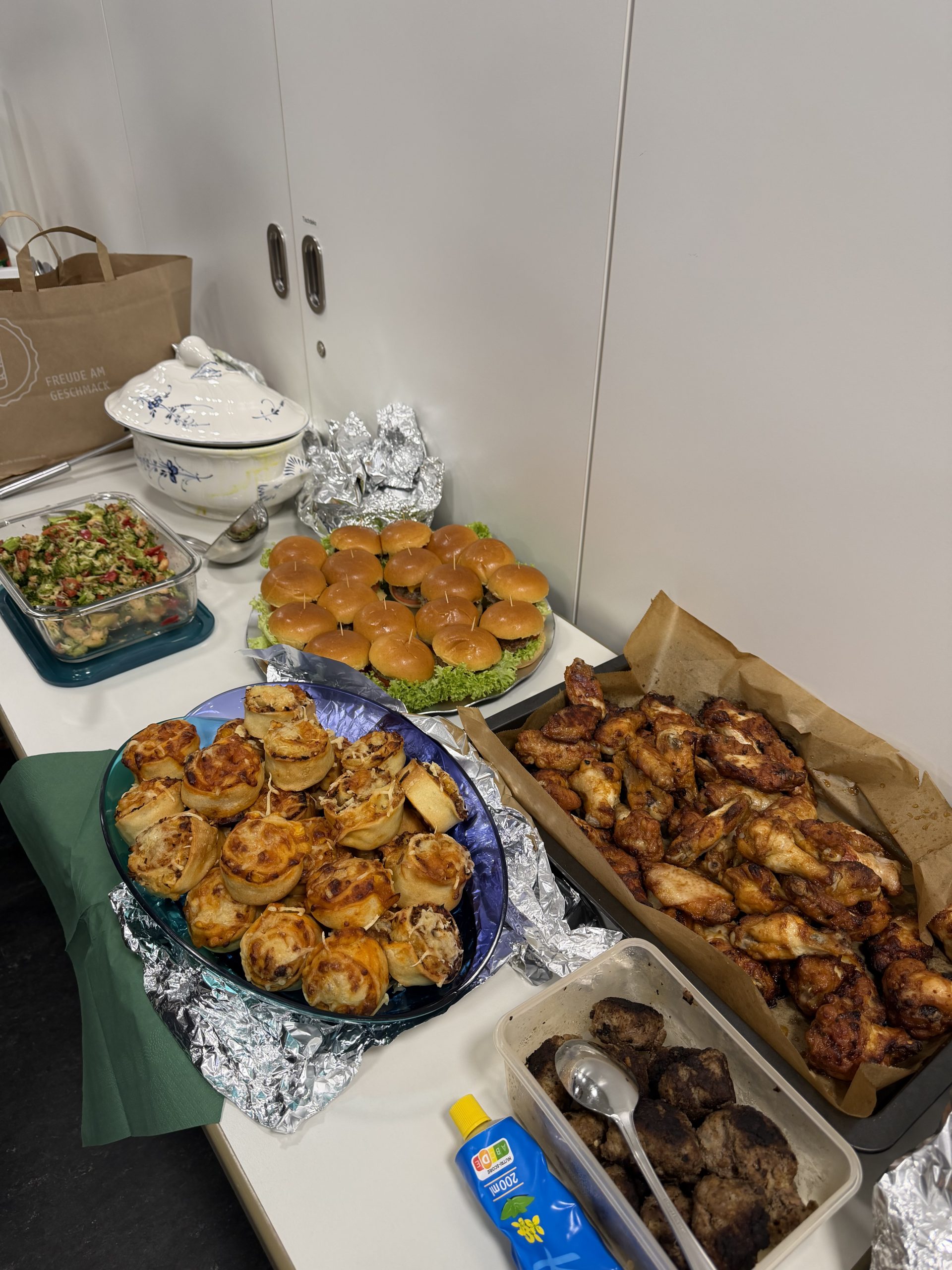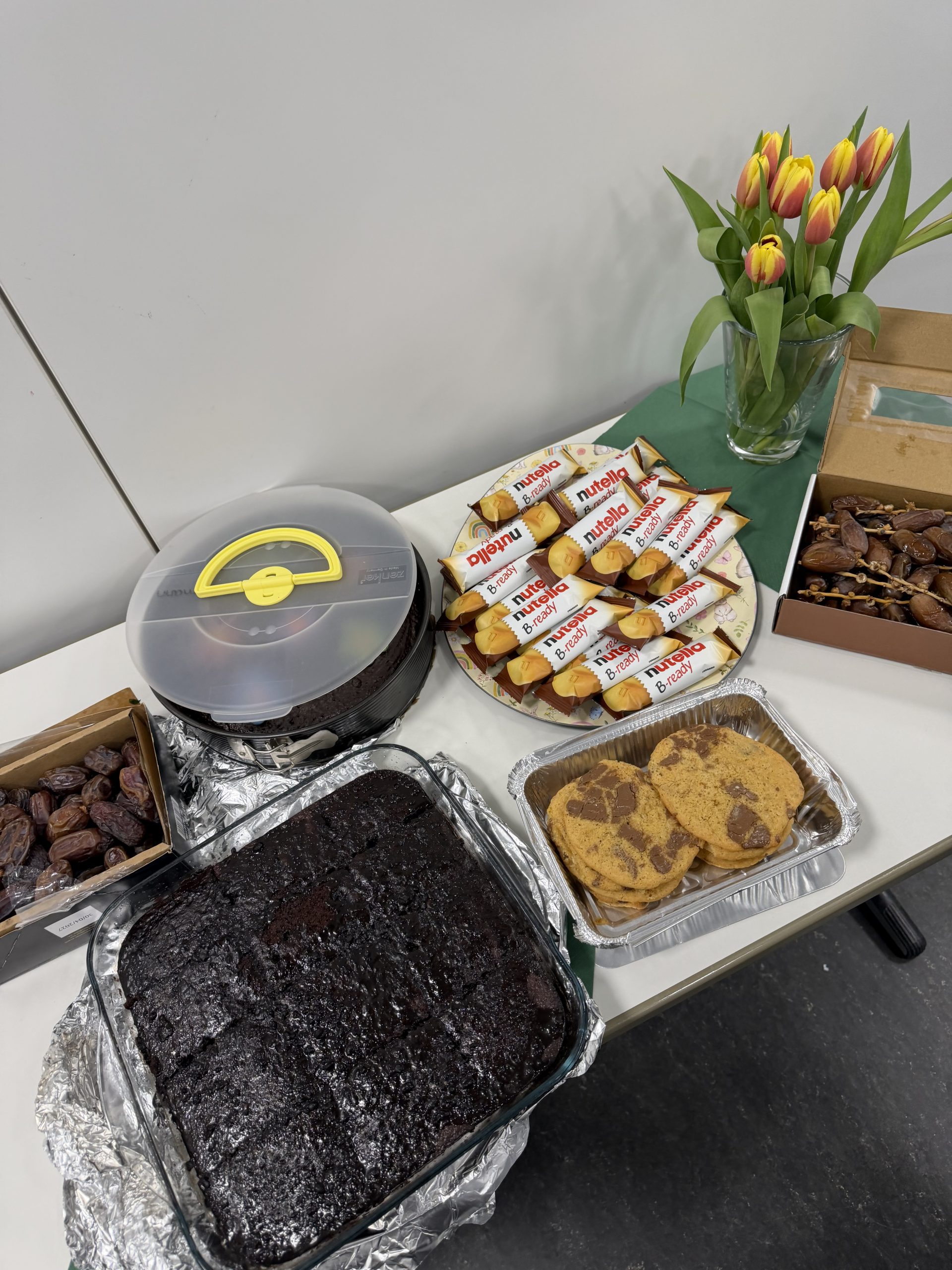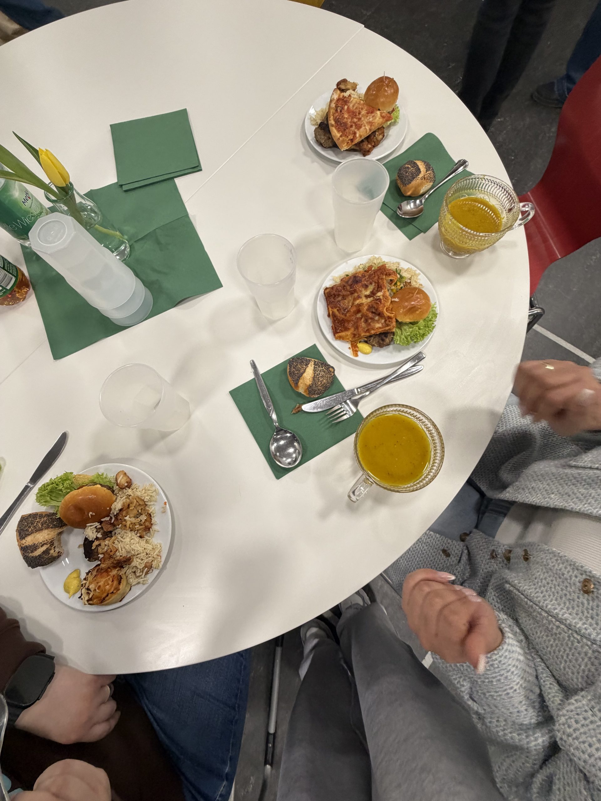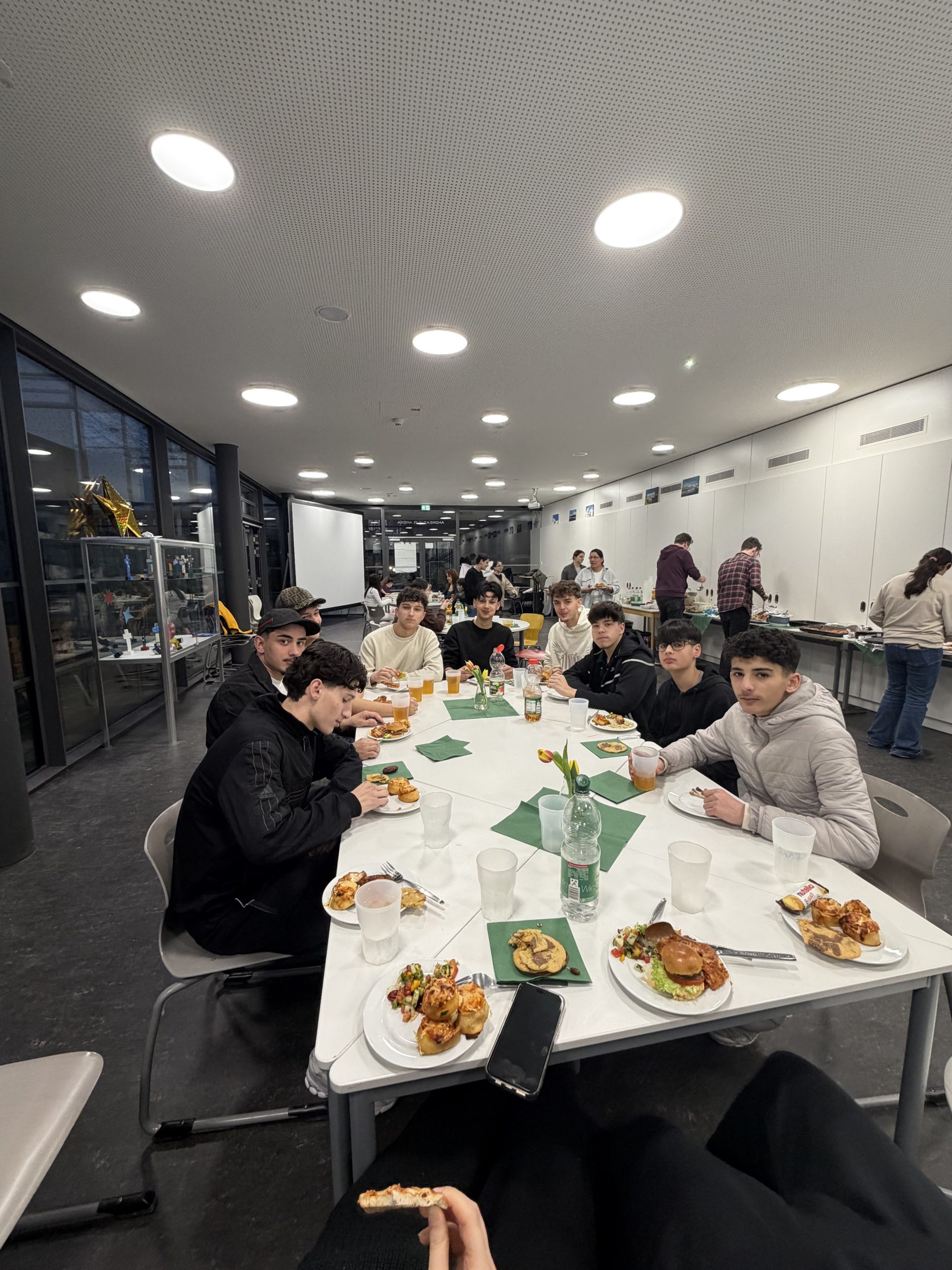 Auch im Jahr 2026 konnte wieder das Fastenbrechen für Muslime und Christen in unserer Schule gefeiert werden. Das Fastenbrechen fing um 17:30 Uhr an und ging dann ungefähr 2 Stunden. Schülerinnen und Schüler aus den Klassen 5, 6 und 9 waren gekommen, sogar einige ehemalige Schülerinnen und Schüler nahmen teil. Es wurde viel gegessen, getanzt, Musik gehört und es wurden schöne Gespräche geführt. Es gab viele verschiedene Gerichte, wie Pizzaschnecken, Burger, Chickenwings, Salate, Datteln, Reis nach libanesischer Art, Pizza, Lasagne, Brownies und Kekse. Außerdem hatte Herr Hennig Apfelsaft und Wasser besorgt. Das Fastenbrechen, das von Frau Catic und Herrn Hennig zusammen mit der SV organisiert worden war, soll den Austausch zwischen den unterschiedlichen Religionen stärken. Frau Dedek, die mit anderen Lehrkräften auch an der Veranstaltung teilgenommen hat, fand es besonders toll, dass die leckeren Gerichte selber zubereitet wurden.
