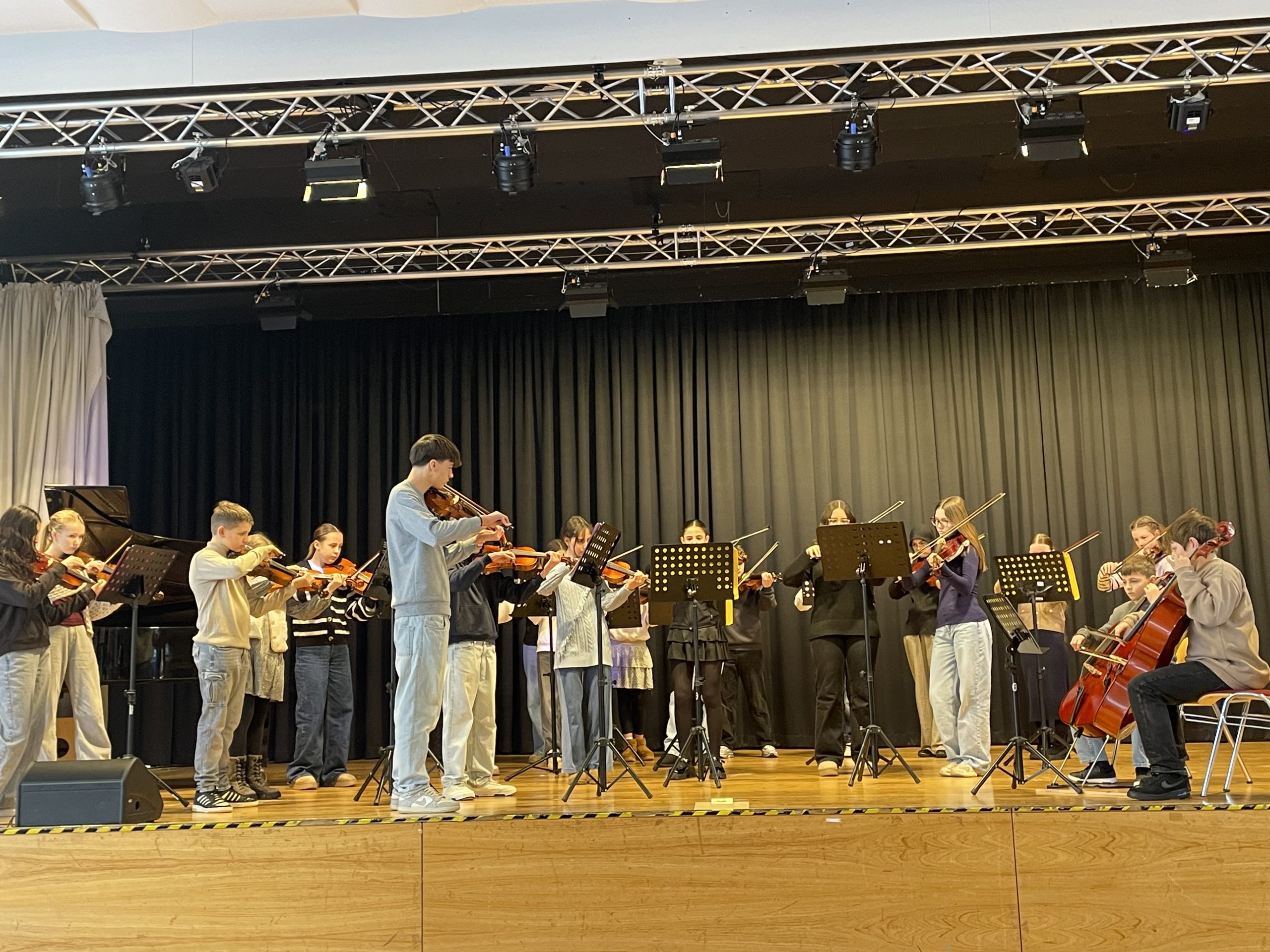 Am Tag der offenen Realschule erhielten Viertklässlerinnen und Viertklässler sowie ihre Eltern die Möglichkeit, die Realschule Aspe kennenzulernen. Der Vormittag begann in der Aula nach der Begrüßung durch Schulleiter Jan Elstrod mit einem Musikstück des Streicher Ensembles unter der Leitung von Clarissa Olivier, gefolgt von zwei kleinen englischen Sketchen der bilingualen Klasse 5b , die ihre Englischlehrerin Justine Maron mit den Schülerinnen und Schülern eingeübt hatte.