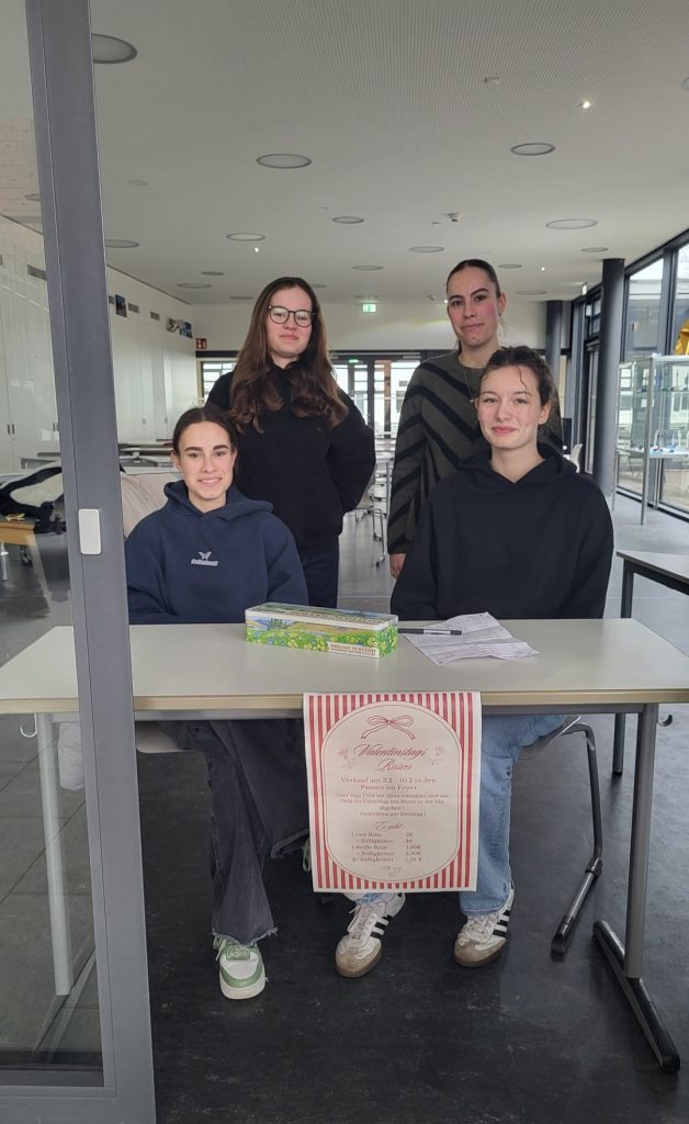Organisiert wurde die Aktion von Lena, Paula, Tabea und Inga. Sie planten gemeinsam den Ablauf und verteilten die Rosen am Freitag vor dem Valentinstag, der in diesem Jahr auf einen Samstag fällt, in der Schule. Der Erlös der Aktion ist für den Abschluss der 10. Klassen vorgesehen.