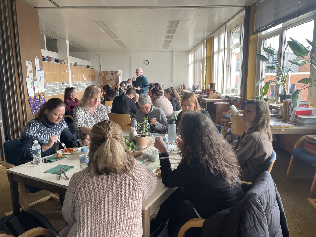 In der Mittagspause hatten einige Schüler aus dem zehnten Jahrgang mit Unterstützung von Helin aus der 5a ein Büfett vorbereitet. Angeboten wurden verschiedene Gerichte wie selbstgemachte Pizza, Nudelgerichte und andere internationale Spezialitäten, die alle sehr lecker waren. Das gespendete Geld wollen die Zehntklässler für ihren Abschluss sparen, um damit unter anderem die Abschlussfeier und Dekoration finanzieren zu können.
