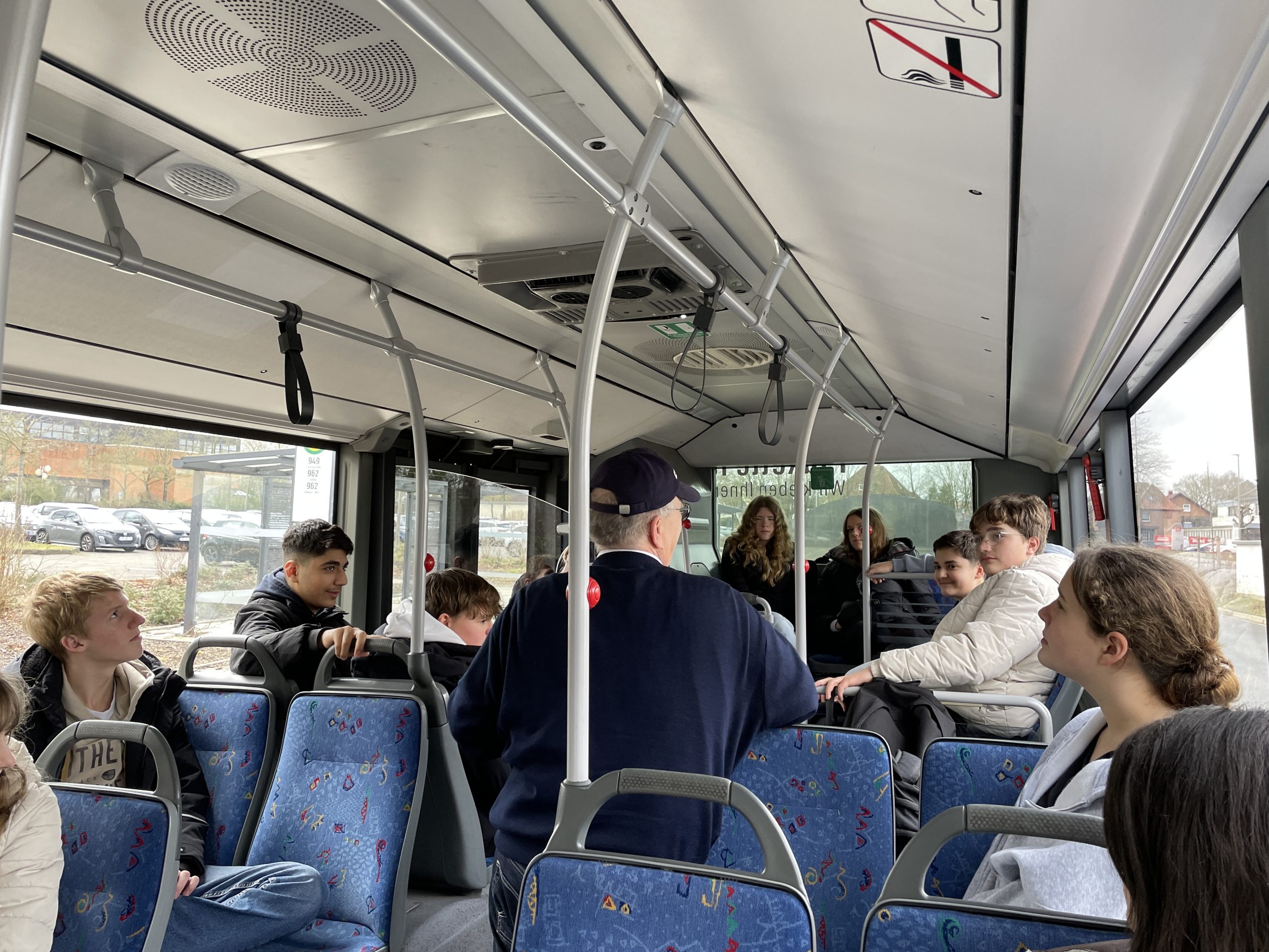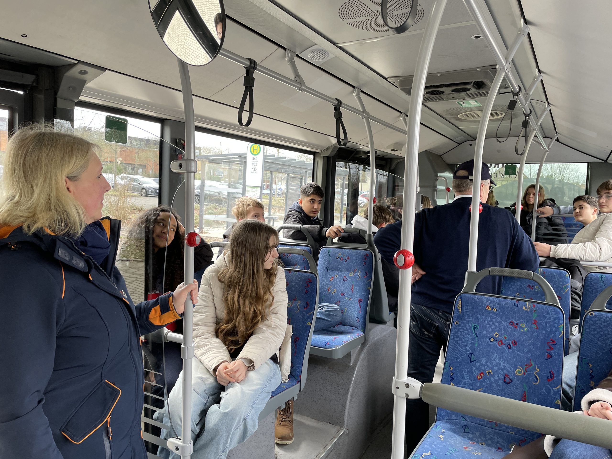 Vor ihrem Einsatz in diesem Schuljahr nahmen die 14 „Neuen“ an einem zweitägigen Seminar teil. Dort lernten sie durch Rollenspiele, wie man Konflikte erkennt, schlichtet und deeskalierend eingreift. Außerdem wurden Gefahrenquellen im Bus thematisiert. Die Ausbildung wurde von den Schulen organisiert und in Zusammenarbeit mit dem Verein „Up to You – Bus & Bahn machen Schule e.V.“ durchgeführt. Stefanie Nolte begleitete das Projekt von Seiten des Vereins. Der Stadtbus-Service der Stadtwerke Bad Salzuflen organisierte die Bereitstellung eines Busses für das realitätsnahe Durchführen der Rollenspiele mit Unterstützung des Busfahrers Andreas Geuken vom Busunternehmen Köhne. Auch die Salzufler Polizei unterstützte das Seminar durch Teilnahme des für unser Schulzentrum zuständigen Bezirksdienstbeamten Tom Klitzing.