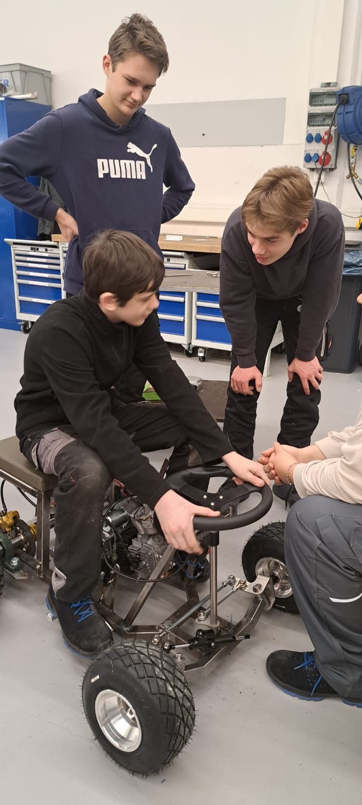 Kreativität ist Trumpf bei den Technik-Profis unserer Schule: Nach dem Bau eines kleinen Solarautos haben sich elf Schülerinnen und Schüler im Schuljahr 2025/26 an die Entwicklung eines Cars mit Benzinmotor gewagt.
