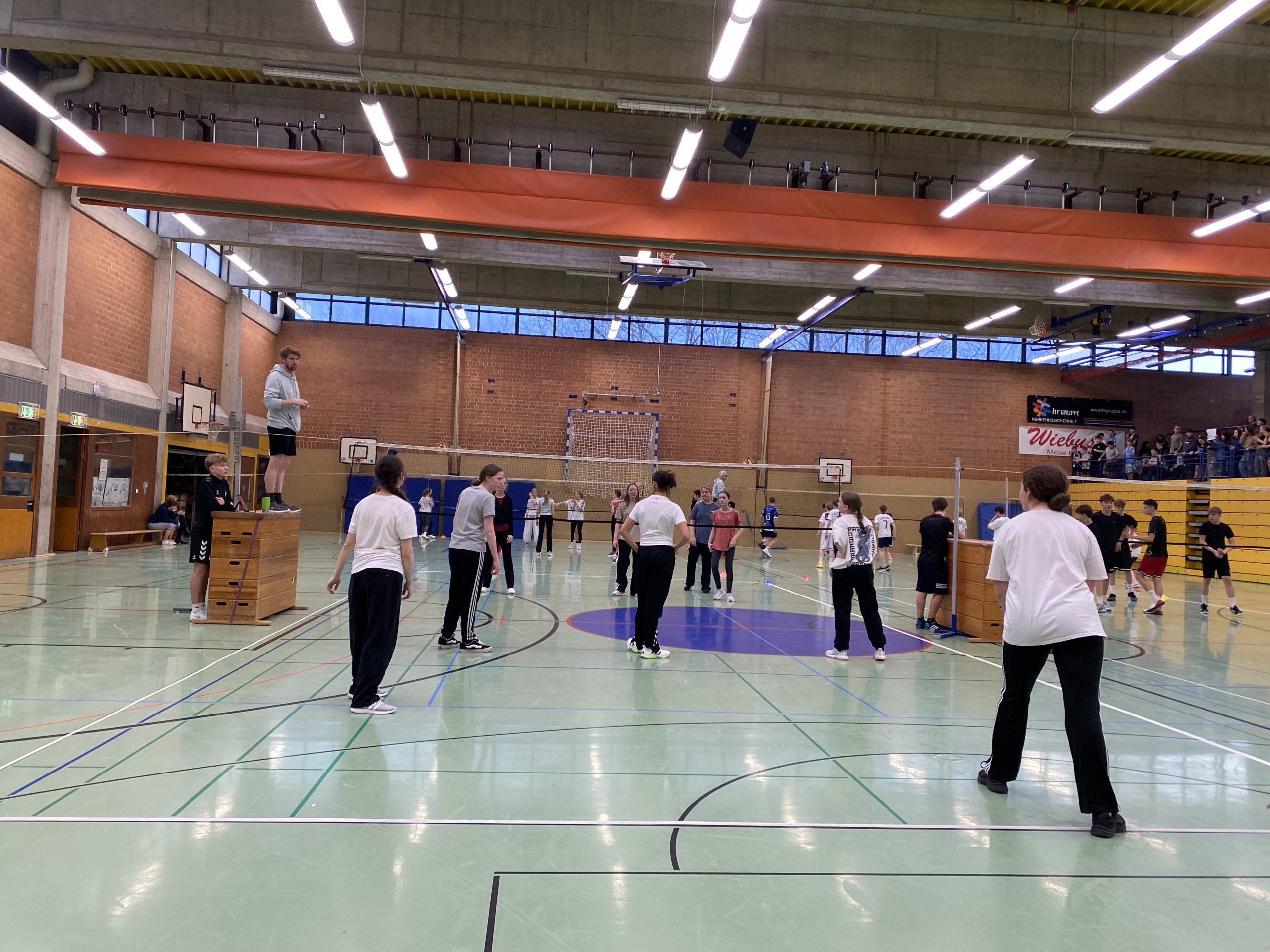 Beim Indiaka-Turnier der 7. Klassen siegte bei den Mädchen und Jungen jeweils die 7a. Bei den 8. Klassen gewannen bei den Jungen die 8a und bei den Mädchen die 8b. Bei den 9. Klassen wurden die Jungen der 9a Jahrgangssieger im Volleyball, bei den Mädchen hatte die 9b die Nase vorn. Im 10. Jahrgang standen die Jungen der 10c und die Mädchen der 10b ganz oben auf dem Treppchen. In den abschließenden Jahrgangsmatches siegten die Jungen der 10c gegen die Jungen der 9a und die Mädchen der 10b waren gegen die 9b erfolgreich. Beim Match der 10. Klassen gegen eine Lehrerauswahl konnten sich in diesem Jahr – zu ihrer großen Freude – die Lehrer durchsetzen…